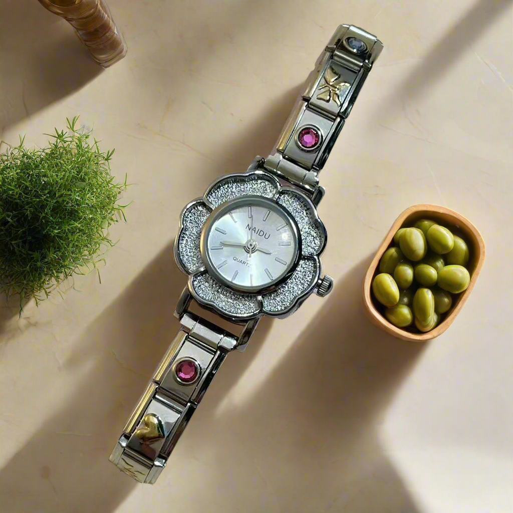 Indulge in luxury with our Women's Quartz Watch, featuring a chic design with zirconia flower inlays. Made with a durable stainless steel strap, this watch is perfect for any party or as a birthday gift for her. Stay elegant and stylish with every tick of the clock.